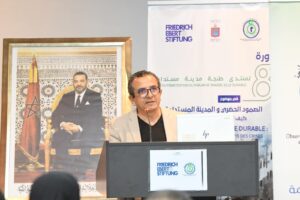 وفي معرض كلمته أشار السيد أنس الحسناوي ممثل مؤسسة Friedrich Ebert Stiftung، إلى أهمية التعاون والشراكة التي تجمع مؤسسة بمرصد حماية البيئة والمآثر التاريخية، والتي تعتبر شراكة نموذجية ضمن عمل المؤسسة في الشرق الأوسط وشمال افريقيا. كما بين أهمية الجانب التنظيمي للمرصد والذي يجمع بين أحزاب ونقابات وجمعيات، تشتغل كلها حول قضايا تهم مدينة طنجة. وهو ما يجعل عمل المرصد يستحق التقاسم كتجربة رائدة لعمل المجتمع المدني الفاعل. كما أكد على أن مستقبل المرصد بما راكمه من تجارب وتقارير ومؤشرات، تستدعي دخوله غمار المنتديات الوطنية. إلى جانب الانفتاح على مقاربة النوع باعتبارها عنصرا أساسيا ضمن المخاطر التي تطرحها التغيرات المناخية، والتي تمس النساء على الخصوص.